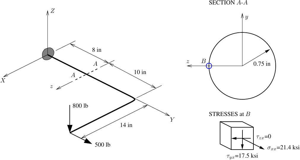 - Shear stress, \(\tau_{yx}\) = 16.0 ksi