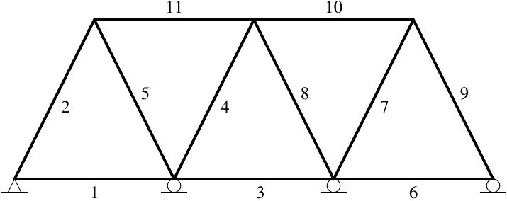 Consider a truss model with 11 members that is two degrees statically indeterminate.