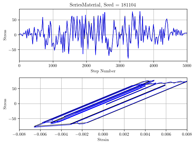 ops.uniaxialMaterial('Elastic',-1,E), ops.uniaxialMaterial('Hardening',-2,E,Fy,0.05*E,0.05*E), ops.uniaxialMaterial('Series',matTag(),-1,-2)
